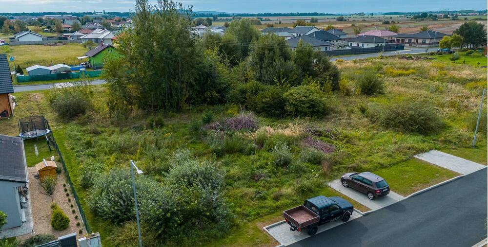 Velikost pozemku je 700m2. Jedná se o rovinatý pozemek s obecní příjezdovou cestou. Na Hranici pozemku se nachází obecní vodovod, kanalizace a vedení elektřiny. Plynovod zde vedený není.