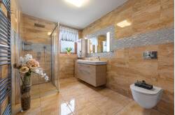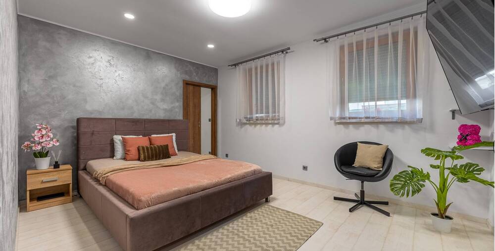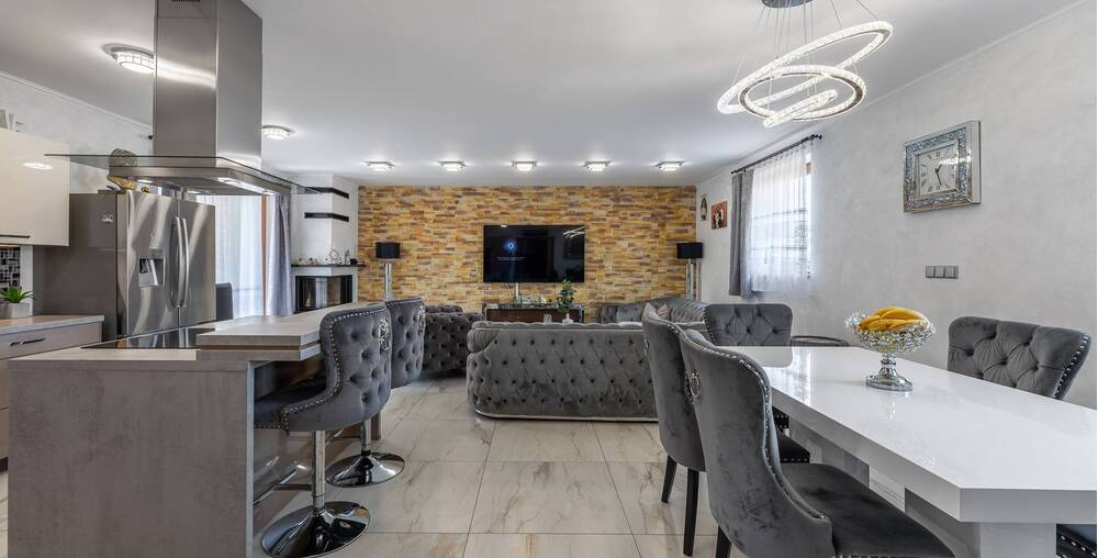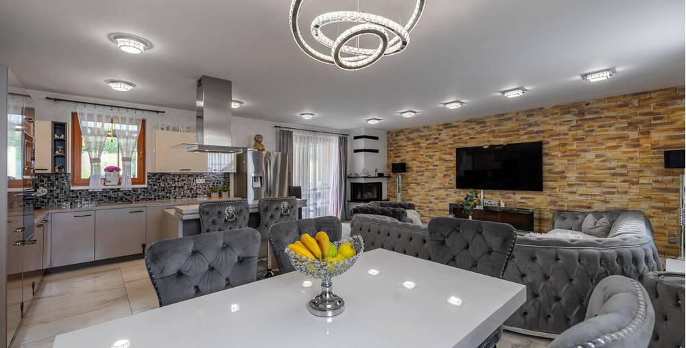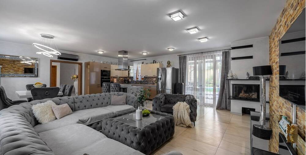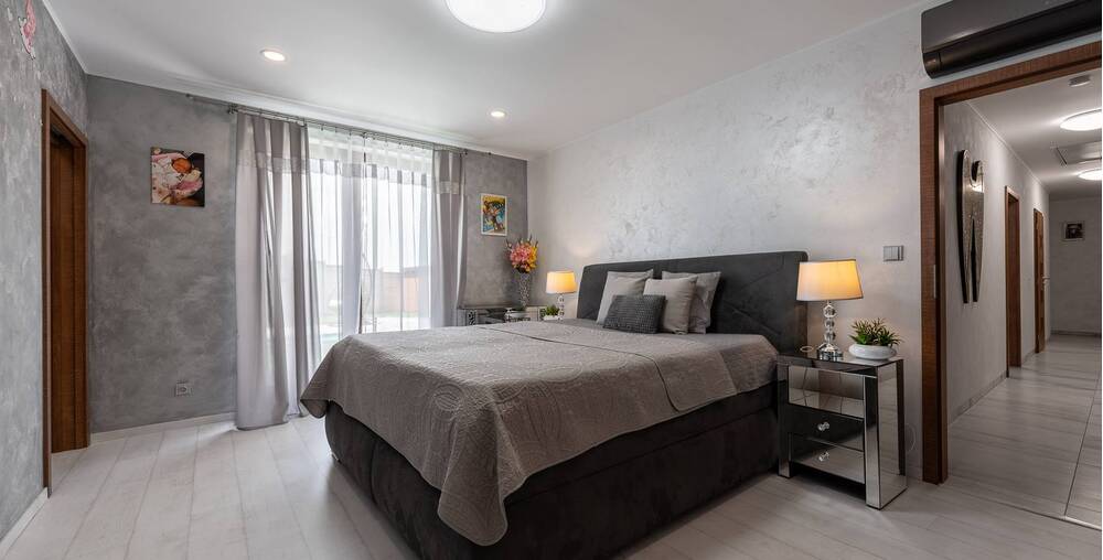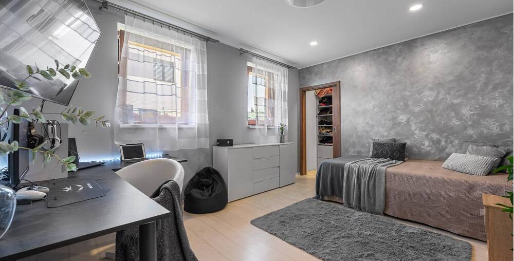 Dům nabízí velké a prostorné místnosti, které poskytují dostatek prostoru pro celou rodinu. Každá ložnice a dětský pokoj jsou vybaveny velkou šatnou, což Vám umožní udržet si doma pořádek a organizaci.