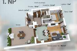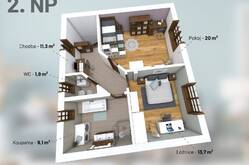 1. NP – dva prostorné dětské pokoje, koupelna a samostatné WC.