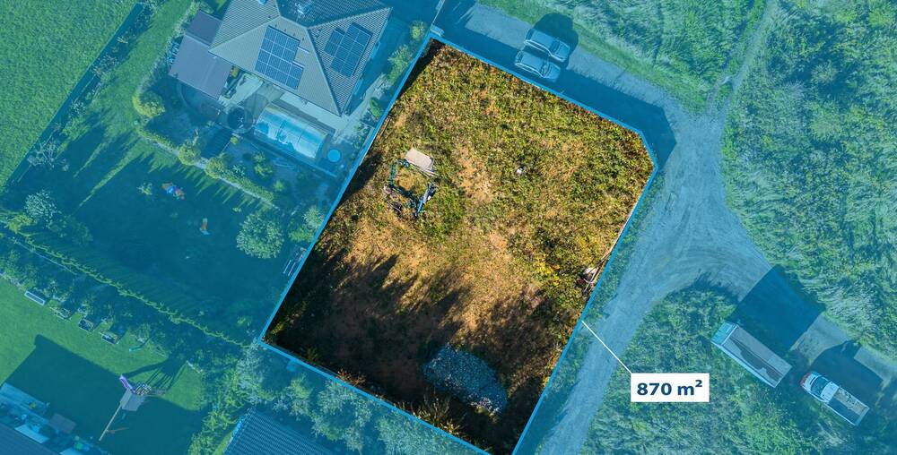 Pozemek o velikosti 840 m² nabízí dostatek prostoru pro zahradu, terasu, bazén nebo případnou menší přístavbu. Lokalita zajišťuje výbornou dopravní dostupnost do Prahy – přibližně 30 minut jízdy.