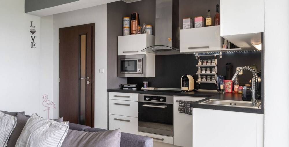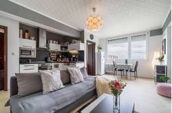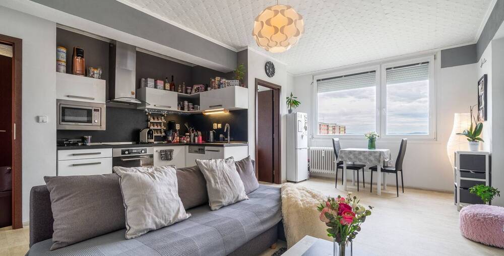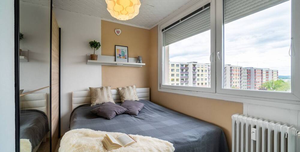 Byt se dispozičně skládá ze vstupní chodby, koupelny, WC, obývacího pokoje s kuchyňským koutem a ložnice. Výhodou bytu jsou automatické elektrické rolety, které zabrání sluníčku a dělají tak v letních dnech příjemnou pokojovou teplotu. Byt se pronajímá vybavený vč. nábytku, jež vidíte na fotkách.