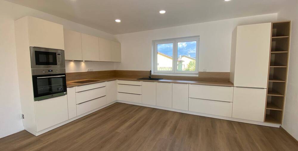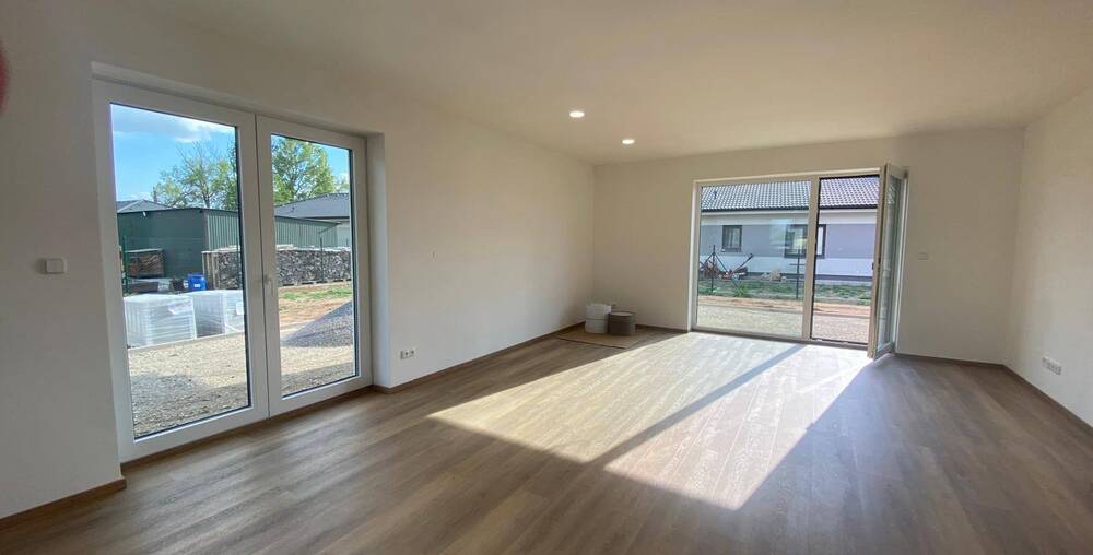 Nabízíme k pronájmu moderní jednopodlažní bungalov (bytová jednotka 3+kk, 115 m²) se zahradou o rozloze cca 500 m².