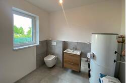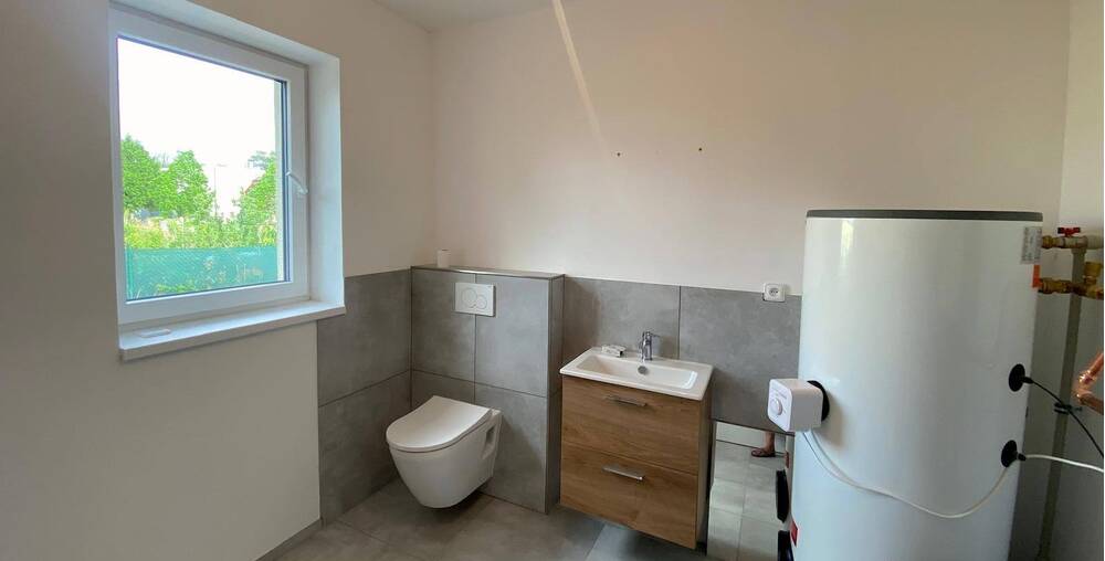 Dispozice: prostorný obývací pokoj spojený s kuchyní, ložnice, menší místnost (šatna/komora), technická místnost s WC, koupelna s WC, vanou, sprchovým koutem a terasa. Dům je vybaven venkovními žaluziemi na dálkové ovládání, vytápění zajišťuje tepelné čerpadlo. Klidná lokalita na konci ulice, v blízkosti přírody – rybník Hradištko, Labe, lužní lesy, fotbalové i dětské hřiště.